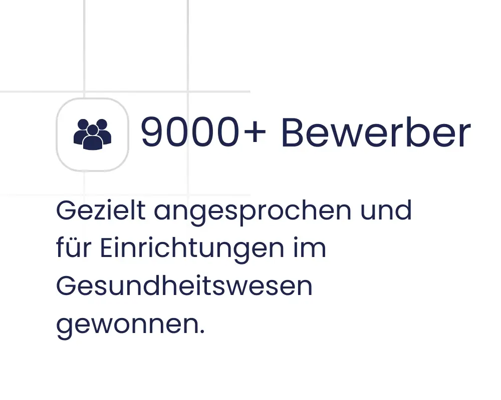 Wir arbeiten ausschließlich mit Unternehmen aus Pflege, Medizin und Gesundheitswesen. Dadurch kennen wir die Zielgruppen, Herausforderungen und Recruiting-Kanäle dieser Branche genau.