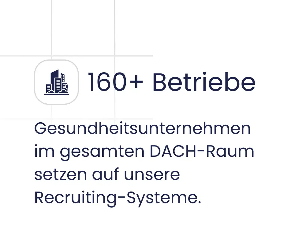 Wir helfen Gesundheitsunternehmen im DACH-Raum, sichtbar für qualifizierte Fachkräfte zu werden – gezielt, effizient und mit messbarem Recruiting-Erfolg.